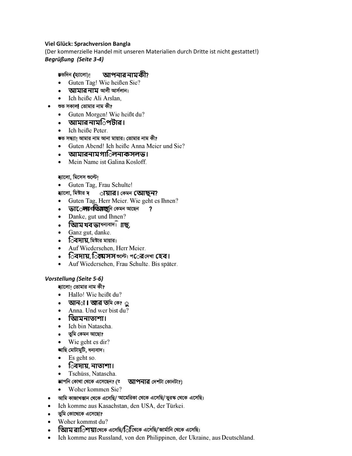 Bangla (verkleinert) - Viel Glück! Anfänger-Deutschkurs